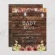 Het Rustic Land van de begroting buiten op Donker Hout met Bourgogne, Oranje en Gele Zonnebloemen met Mason Jars op String Light Autumn of Herfst Baby Shower Invitations - omvat mooie en elegante scripttypografie voor de speciale Moeder om te worden gevierd.