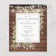 Met delicate waterverf groene bladeren en strijklichten op een rustieke houten achtergrond, kan deze chique budget huwelijksdoucheuitnodiging worden gepersonaliseerd met uw speciale vrijgezellenfeest-informatie. Ontworpen door Thisnotme©