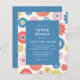 Budget Scandi Boho Folk Flower Blue Bridal Shower Uitnodiging