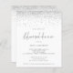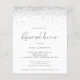 Silver Glitter Wedding Rehearsal Dinner. Een budgetprijs voor KLEINE 4,5 x 5,6 inch. Verkrijgbaar in een SEMI-GLOSS 110 lb KAART STOCK dat de standaardoptie is (dikker voor uitnodigingen), OF een SATIN FINISH 80 lb THINER PAPER STOCK (ideaal voor behuizingen). De enveloppen zijn een facultatieve extra en zijn lichtjes groter dan de kaartgrootte. Dit moderne ontwerp heeft elegant informeel setscript voor Rehearsal Dinner en Silver Faux glitter-randen bovenaan beide zijden. De rest van de typografie kunt u gemakkelijk personaliseren.