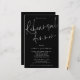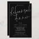 Een GROTER formaat van 5,5 inch x 8,5 inch voor een budgetprijs, in klassiek zwart-wit. Dit moderne ontwerp heeft een elegant informeel setscript voor de repetitie Dinner en de rest van de typografie kun je gemakkelijk personaliseren op een zwarte achtergrond. U kunt tekst- en achtergrondkleuren ook aan beide zijden wijzigen als u dat wenst via de optie Verdere aanpassen.