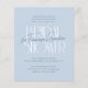 Een stoffig blauwe uitnodiging voor een bruidsdouche met een beperkt budget, met vetgedrukte typografie en handgeschreven scriptlettering. De voorkant van de kaart heeft een lichtblauwe achtergrond met "Bruidsdouche" geschreven in witte deco-geïnspireerde typografie. De naam van de aanstaande bruid is eroverheen geschreven in chic moderne kalligrafie. Boven en onder staan de details van het evenement in elegante formele serif typografie. De achterkant van de kaarten heeft een waterverf bloempatroon. Als onderdeel van de budgetselectie op Zazzle is dit vel geen standaard uitnodigingsformaat of papiersoort. Als je dit ontwerp op een uitnodigingskaart wilt, kun je het in de collectie vinden of de Zazzle Make Machine gebruiken om het op het product van je keuze over te brengen. Bekijk de collectie die op deze