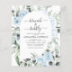 Budget Dusty Blue Floral Rozen en Eucalyptus Botanical Greenery Waterverf Spring of Summer Wedding Brunch en Bubble Champagne Bridal Shower Invitations - omvat prachtige en elegante scripttypografie met moderne tropische botanische bloemen en groen voor de speciale Bride om beroemd te worden.