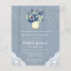 Budget Dusty Blue Lace Bridal Shower - Een mooie landmoeraspot vol met waterverf bloemen zit op een stoffige blauwe houtachtergrond, voorzien van landzijde en witte roze lichten. De moeraspot is gegraveerd met de initialen van de bruid en de bruidegom. De perfecte bruiddouche-uitnodiging voor de bruid die van een bijtend thema houdt. Uitnodiging maakt deel uit van een collectie. *Let op, dit is een begrotingsoptie. Kies onze platte kaart of ons briefkaart als u dikker papier wilt. We raden u aan geen satin voor de budgetoptie te kiezen.* Ontworpen door: Beverly Arena-Bainbridge Homespun Cottage Design E: homespuncottagedesigns@gmail.com