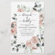 Budget Dusty Pink Floral Rozen en Eucalyptus Botanical Greenery Waterverf Spring of Summer Wedding Brunch en Bubble Champagne Bridal Shower Invitations - omvat prachtige en elegante scripttypografie met moderne tropische botanische bloemen en groen voor de speciale Bride om te vieren.