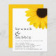 Budget Sunflower Brunch Bubble Vrijgezellenfeest. Een budgetvriendelijk KLEINER 4,5 x 5,6-inch alternatief. Verkrijgbaar in een SEMI GLOSS 110 lb KAART STOCK of een SATIN FINISH 80 lb THINER PAPER STOCK. Enveloppen zijn een optionele extra. Informele stijl. Moderne grote zonnebloem naar de rechterbovenhoek en de kopbal naar links in stijlvolle kleine letters met de details onderaan. Pas de tekst eenvoudig aan uw eigen details aan.