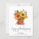 Zonnebloemen Red Berries Happy Thanksgiving. Een SMALLER 4,5 x 5,6 inch budget in een SEMI-GLOSS 110 lb KAART STOCK, vergelijkbaar met de dikte van een briefkaart. De enveloppen zijn lichtjes groter dan de kaartgrootte. Verstuur je geliefden Happy Thanksgiving-groeten met dit ontwerp van gele en oranje zonnebloemen in een roest houten verpakking en stijlvol handschrift, Happy Thanksgiving. Pas je namen eenvoudig aan.
