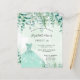 Een trendy uitnodiging voor een Sweet 16, 16e verjaardagsfeestje, met een betoverend bosthema. Een groene waterkleurige achtergrond met fernons en eucalyptusgroen, een groene jurk. De naam wordt geschreven met een modern handgeschreven stijlmanuscript met letters. Pas je partijgegevens aan en voeg deze toe.