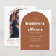 Moderne terracotta roest bruin details RSVP QR code website foto bruiloft uitnodiging
