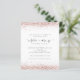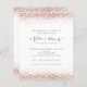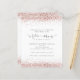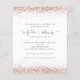 Toekomstige Mrs. Roze Gouden Glitter Bruidsdouche uitnodiging. Een voordelige kleinere 4.5” x 5.6” alternatief. Beschikbaar op halfglans 110 lb KARTON, wat de standaardoptie is (aanbevolen voor uitnodigingen), OF een 80 lb DUNNER PAPIER MET SATIJN AFWERKING (ideaal voor bijlagen). Enveloppen zijn een optionele extra en zijn iets groter dan de kaart. De Toekomstige Mrs staat in een artistiek script met ring- en hartmotieven en de rest van de tekst kun je gemakkelijk personaliseren. De boven- en onderranden aan beide zijden zijn omrand met glitter in roze goud.