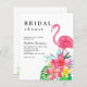 Laat je meevoeren naar een oase van weelderig groen, levendige bloemen en de zachte wieg van palmbomen. Onze uitnodiging zet de toon voor een tropisch feest, met een charmante flamingo tussen exotische bloemen en gebladerte, die de geest van avontuur en romantiek oproept.