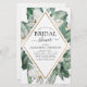 Budget Tropische Magnolia Flowers met Floral Greenery Palm en Faux Gold Foil Geometric Border Spring of Summer Wedding Bridal Shower Uitnodigingen - omvat prachtige en elegante scripttypografie met moderne tropische botanische bloemen en groen voor de speciale Bride om te vieren.
