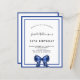 Een moderne, elegante en uitnodiging. Een witte achtergrond met marineblauwe lijsten en een boog. Pas een naam en details aan en voeg deze toe. Zwarte gekleurde letters.