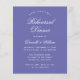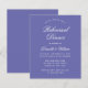 Een simpele uitnodiging voor een repetitief diner met een moderne kleur, een violette nuance genaamd kleur van het jaar 2022. Het heeft enkel witte tekst op violette achtergrond. De woorden "Dinner van de repetitie"en de naam worden geschreven in een elegant kalligrafisch manuscript.