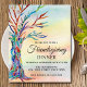 Nodig je vrienden uit voor je Friendsgiving-diner met deze unieke budgetuitnodiging. Het beschikt over een mozaïekboom in de kleuren van de regenboog op een waterverf achtergrond. Gemakkelijk aan te passen. Origineel mozaïek en Waterverf © Michele Davies.