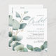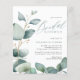 Moderne boho chique salie groen, stoffig blauw, en gouden waterverf eucalyptus sappige bladeren elegant script BUDGET betaalbare bruidsdouche uitnodiging.