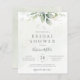 Een prachtige bruiddoucheuitnodiging met waterverf eucalyptus en goudbladeren.