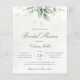 Prachtige voordelige bruiddoucheuitnodiging met waterverf eucalyptus en goudbladeren met kalligrafiescript.
