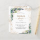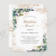 Welkom bij een elegant Vrijgezellenfeest. Een witte achtergrond. Verkleurd met groene waterkleurige eucalyptusbladeren, kruiden, groen, bladreuzel en goudglitterstof. Personaliseer en voeg de naam van de bruid toe om en partijdetails te zijn. Zwarte en gouden letters.