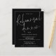 Een budgetprijs voor KLEINE 4,5 x 5,6 inch. Verkrijgbaar in een SEMI-GLOSS 110 lb KAART STOCK dat de standaardoptie is (dikker voor uitnodigingen), OF een SATIN FINISH 80 lb THINER PAPER STOCK (ideaal voor behuizingen). De enveloppen zijn een facultatieve extra en zijn lichtjes groter dan de kaartgrootte. Dit moderne ontwerp in klassiek zwart-wit ontwerp heeft elegant informeel vastgesteld manuscript voor het Dinner van de repetitie en de rest van de typografie u kunt gemakkelijk personaliseren. U kunt tekst en achtergrondkleuren aan beide zijden ook wijzigen als u dit wenst via de optie Verdere aanpassing.
