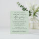 Een budgetvriendelijke sage groen, bespaart de datum waarop een receptie of een feest je huwelijksreis of privé-bruiloft vieren. "Sparen de Datum voor Onze gelukkig Ooit na Partij"wordt geschreven in eenvoudige typografie en een elegant manuscript met swashes. Pas uw trouwaankondiging aan en voeg partij of ontvangst toe sparen de datumdetails en uw namen in een handtekening-als manuscript. Aan de achterzijde voeg uw voornamen en bruiloft- en ontvangstdata toe.