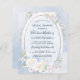 Witte orchideeën creëer elegant floranje en decoreren een dun goudovaal lijst. Een zachte blauwe waterverf was de achtergrond.