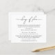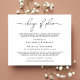 Budgetoptie voor een wijziging van plannen huwelijksaankondiging als de omstandigheden vereisen dat u uw trouwen downsized, uw trouwen uitstelt, de locatie wijzigt, de datum wijzigt, enz. Deze moderne en minimalistische, maar elegante, zwart-wit aankondiging bevat "Wijziging van Plannen" geschreven in een trendy stijlvol script. Personaliseer uw huwelijksaankondiging voor wijziging van plannen gemakkelijk in meer detail.