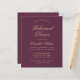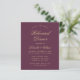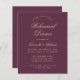 Een simpele uitnodiging voor het diner voor de repetitie van de begroting. Het heeft een gouden tekst op de achtergrond van de wijnkleur (dicht bij de Bourgogne). De woorden "Dinner van de repetitie"en de naam worden geschreven in een elegant kalligrafisch manuscript.
