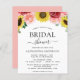 Budget Blush Pink, Bourgogne en Gele Herfst of Autumn Floral (Flowers) Sunflower Botanical Waterverf Wedding Bridal Shower Invitations on white background - omvat moderne mooie en elegante scripttypografie met moderne botanische bladeren en groen voor de speciale Bride om te vieren.