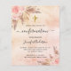 Een roze gouden, blozend roze rustieke namaak metalen uitziende achtergrond. Versierd met roze gouden en blozend roze bloemen, rozen, pampasgras en een gouden kruis. Personaliseer en voeg een naam en details toe.