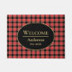 Deze deurmat is voorzien van een moderne versie van een klassiek buffelcontrolepatroon in rood en zwart met een geel lijnaccent. Dit ontwerp is gemaakt met een SVG-afbeelding waarin alle elementen, vormen, lijnen en tekstkenmerken worden weergegeven in kleuren die door de koper op elke tint kunnen worden aangepast om te coördineren met hun decor.