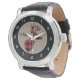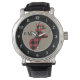 Hier is een leuk en trendy horloge dat ook aantrekkelijk is! In het midden staat een rood-zwarte buffel geruite silhouet bok hertenkop. Naast het herten afbeelding staat je drie letters monogram in het zwart. Het afbeelding is geplaatst op een licht geelbruine achtergrond, die is omgeven door een zwarte cirkel met witte cijfers, waardoor het horloge gemakkelijk te lezen is.