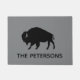 Buffalo Lover's welkome mat. Pas met uw familienaam aan, Onthaal, of schrap de standaardtekst als u helemaal geen tekst verkiest. Dit coole buffelsilhouetontwerp maakt een prachtig cadeau voor een huisvredefeest, nieuwigheden, feestdagen en meestal elke keer. Een leuk cadeau voor Buffaloniërs. Er zijn meer kleuren beschikbaar. Bezoek de Doodle World van Jenn voor nog meer dierenvriend slaapzalen en thuisdeuropening.