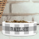 Deze gepersonaliseerde hondenkom is voorzien van een lichtgrijs en wit buffel check patroon met de naam van uw hond in donkergrijs retro typemachine lettertype. Het perfecte accessoire voor huisdieren om in te passen in uw boerderij decor.