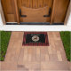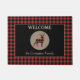 Een buffel geruite silhouet gewei hert ligt in het midden van een geelbruine cirkel op deze aantrekkelijke deurmat. De cirkel is geplaatst op een zwarte achtergrond, die is omlijst met een bijpassende rode en zwarte buffel plaid rand. Uw aangepaste tekst is in bijpassende tan boven en onder de cirkel en herten afbeelding. Perfect voor een hut, boshuis, maar comfortabel thuis in de stad, ook!