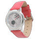 Grappig kwaadaardig horloge met de Evil Flower Bug - grijnzend cartoon schepsel met scherpe tanden met een bloemetje op donkere textuur achtergrond. Het is kwaadaardig, maar het is ook wel schattig. En hij houdt van bloemen... houdt ervan om ze op te eten.