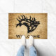 Pas dit unieke "één van een soort" bull Elk van de deur Mat aan! Het is voorzien van een Mallhome Bugling Bull Elk Black Silhouette..op een Gestreepte houten achtergrond! Oorspronkelijk fijn schilderen door artiest Kerry Miller.