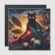Buitenaardse kat gemaakt van sterren: surrealistisch kunstwerk met metalen bollen en levendige kosmische zonsondergang