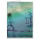 Meisje breit buiten. Blauwe tint. Draad van Barbed en een boom met een zwaai. Ook een paar geboortes. Het is een zoete kaart!