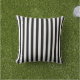 Dit buitenkussen is afgebeeld in een leuk zwart-wit gestreept dessin.