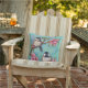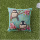 Deze kleurrijke buitenste kussen zullen het lied van de lente en de zomer op je veranda, geduld of dek zingen. Het is een motief voor cichorei op een bloesem beladen perzikboomtak.