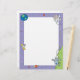 Deze schattige briefhoofd heeft een blauwe grens met planeten, de Aarde, satellieten en een astronaut die vastgebonden is aan een longmodule op de maan.