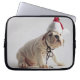 Bulldog Puppy Wearing Santa Hat Laptop Sleeve