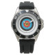 Bullseye targetontwerp op zwart, wit, blauw, rood en geel. Transparante surround / achtergrond om een kleur toe te voegen of wit te houden.