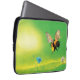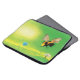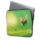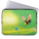 Bumble bee die over een bloeiend beemdje vliegt laptop sleeve