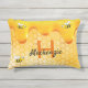 Een gouden bijenhoningraatpatroon en vrolijk lachende hommels. Verdroogd met zoete druppelhoning. Voeg jouw naam en monogram letter, oranje en zwarte letters toe. De naam wordt geschreven met een handgeschreven stijlmanuscript met letters.