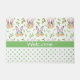 Waterverf konijnenoren patroon met kleurrijke bloemen, oostereieren en groene polka-stippen