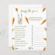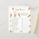 Gender neutrale baby douche uitnodigingen. Met het gezegde 'A LITTLE BUNNY IS ON THE WAY!', een afbeelding van een konijntje met wortel in poten, en vele oranje waterverf wortels. Overeenkomende objecten beschikbaar.