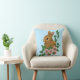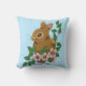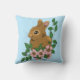 Een schattig bruin konijn zit tussen roze bloemen in een achtergrond van lichtblauw