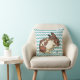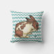 Bunny spoelt zijn gezicht met blauwe chevron kussen